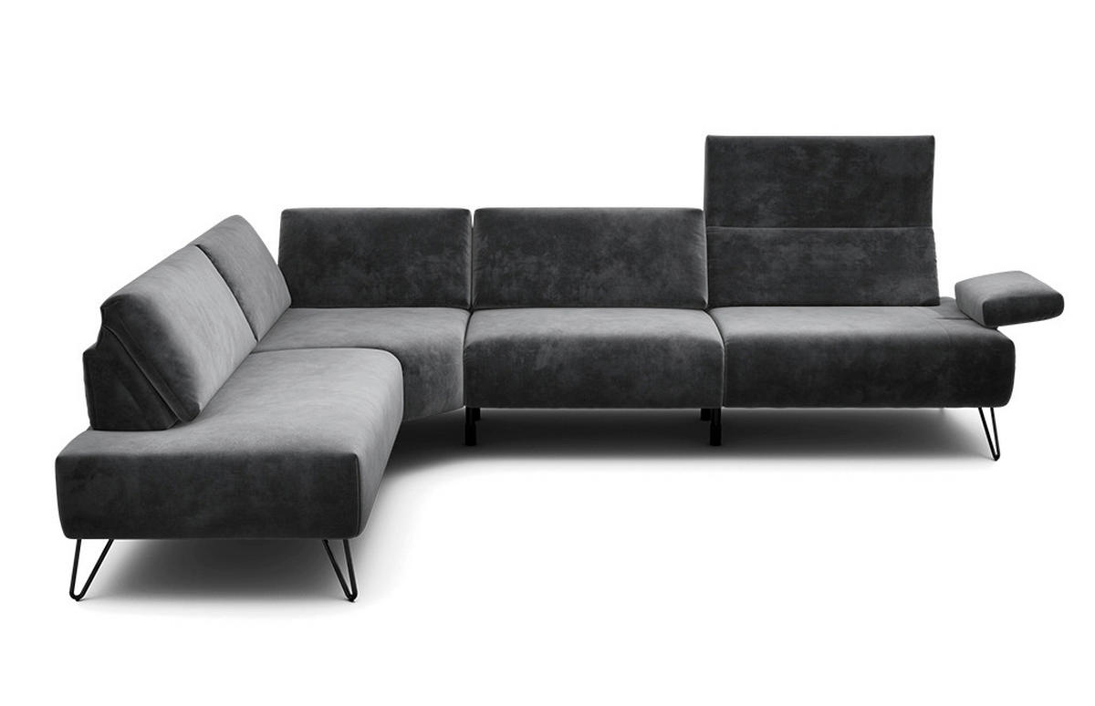 SENSOO ECKSOFA Cosy Anthrazit Samt Rücken echt, Armteilverstellung