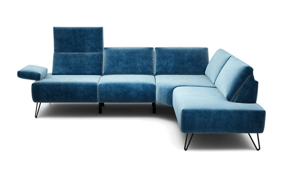 SENSOO ECKSOFA Cosy Blau Samt Rücken echt, Armteilverstellung