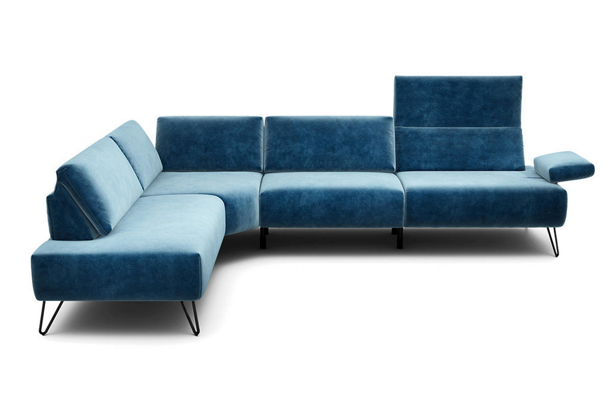 SENSOO ECKSOFA Cosy Blau Samt Rücken echt, Armteilverstellung