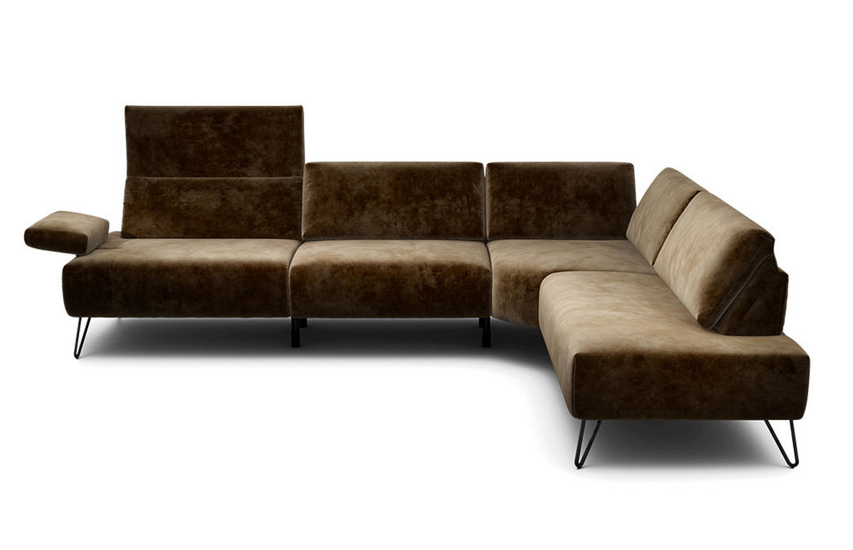 SENSOO ECKSOFA Cosy Braun Samt Rücken echt, Armteilverstellung