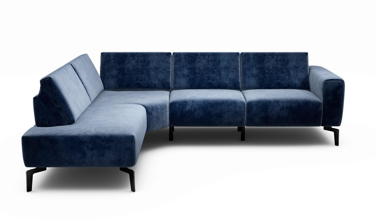 Dieses Design kann sich sehen lassen Dank unzähliger Verstellbarkeiten kombiniert mit hochwertigen Materialien bietet SENSOO Komfort der Extraklasse. Mit seinem klassischen Kolorit in Dunkelblau ist das Polstermöbel ein wahrer Blickfang im Interior-Konzept. Einen festen Stand gewährleisten die hohen, eckigen Füße aus mattem Eisen in Schwarz, die zugleich das Design vervollständigen.