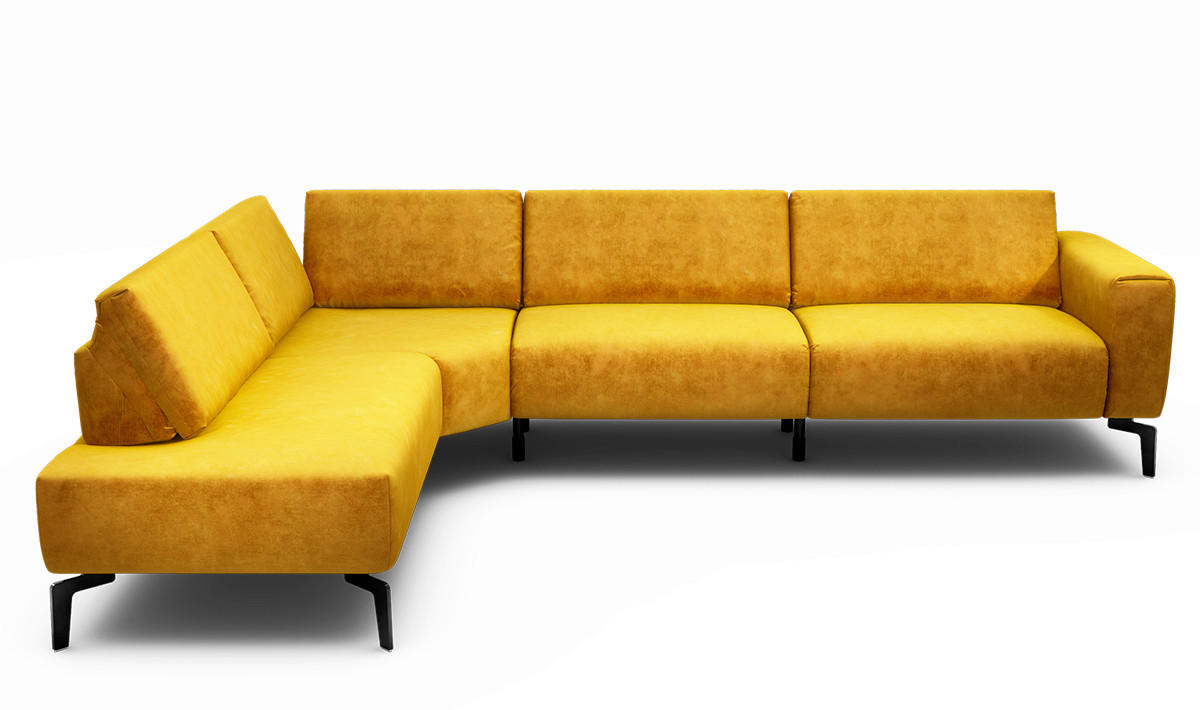 Großes SENSOO Ecksofa mit Samt-Bezug in Gelb: individuell entspannen