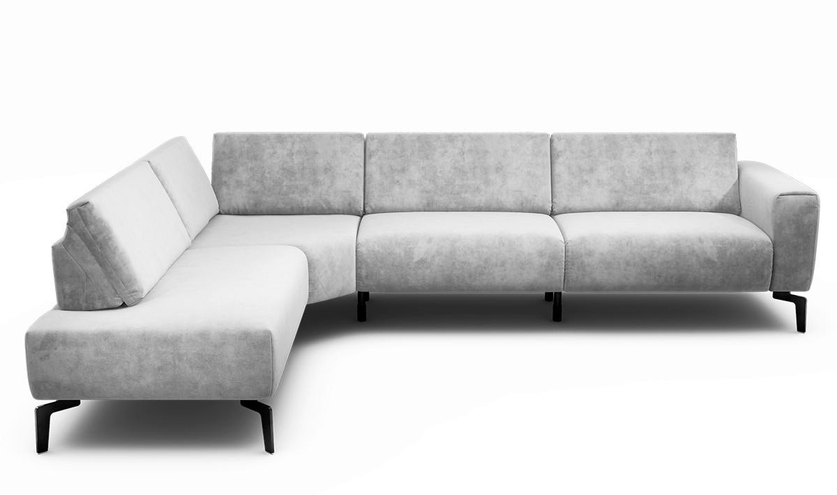 Großes SENSOO Ecksofa mit Samt-Bezug in Hellgrau: individuell entspannen