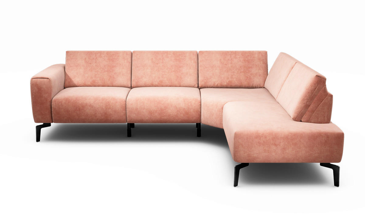 Im Lieferumfang enthalten: Genießen Sie Ihr Rendezvous mit der wohligen Unbeschwertheit des Seins auf diesem rosafarbenen Ecksofa von SENSOO mit Samt-Bezug!