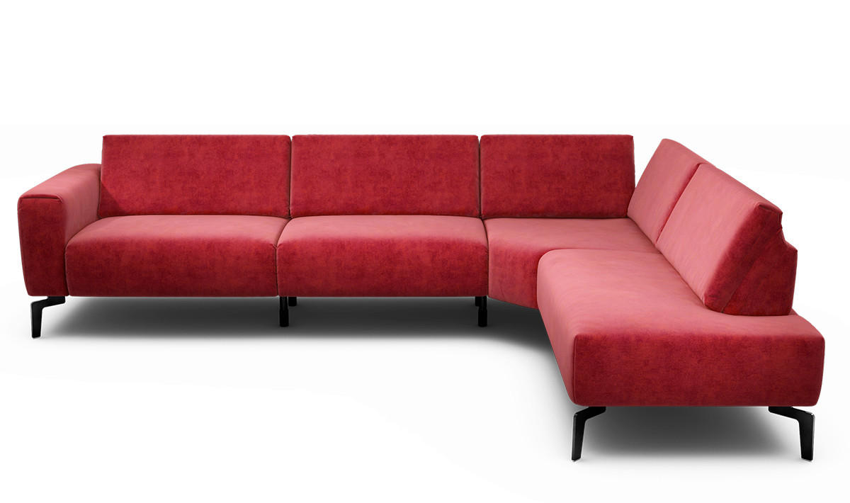 Großes SENSOO Ecksofa mit Samt-Bezug in Rot: individuell entspannen