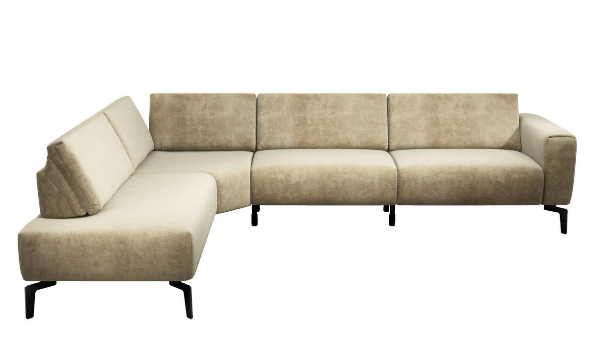 Großes SENSOO Ecksofa mit Samt-Bezug in Sandfarben: individuell entspannen