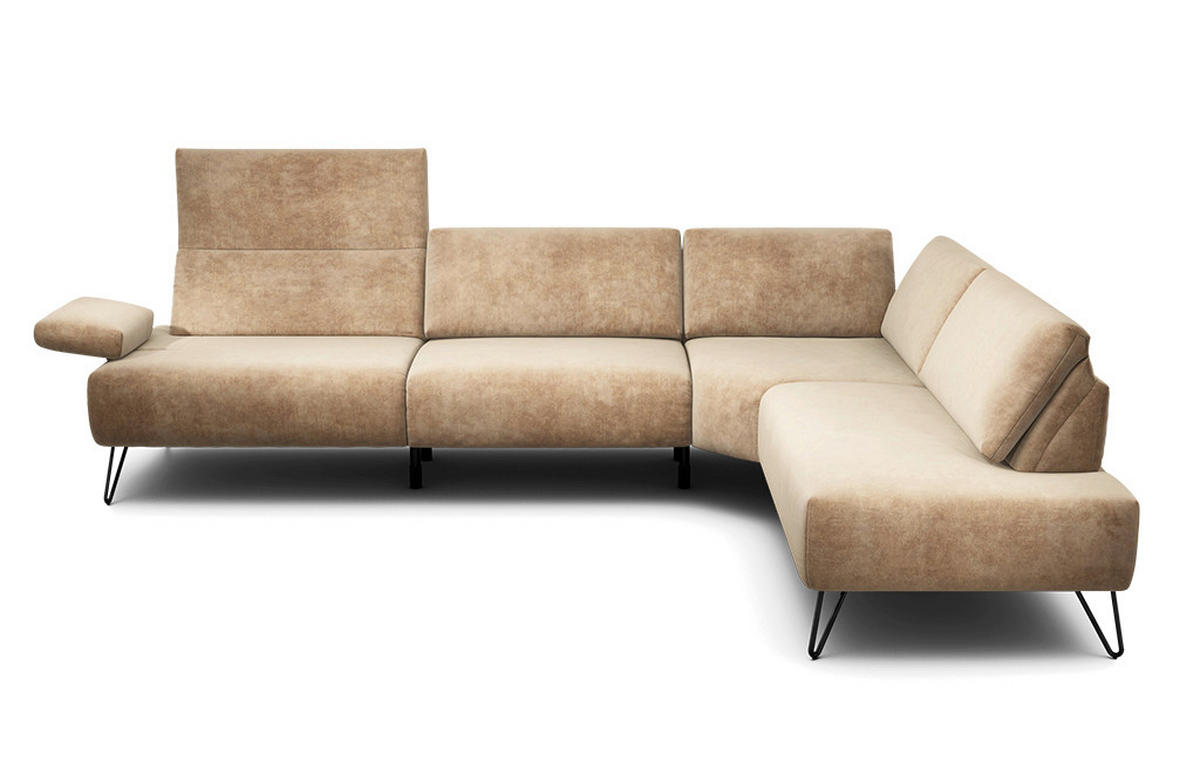 SENSOO ECKSOFA Cosy Sandfarben Samt Rücken echt, Armteilverstellung