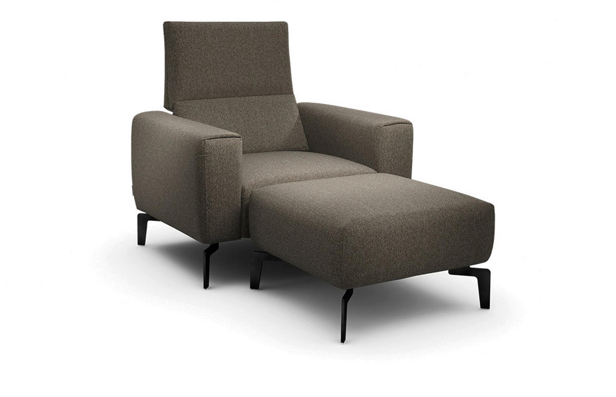 SENSOO Sesselset: Sessel & Hocker mit Chenille-Bezug in Braun