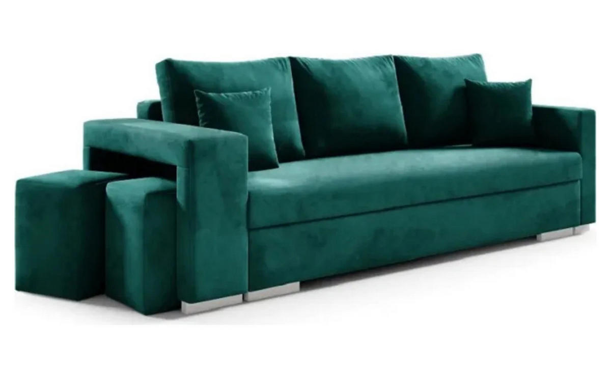 Sofa Tango ist ein elegantes und sehr bequemes Sofa, das das Interieur jedes Wohnzimmers ergänzt. Das Sitz- und Rückenpolster des Sofas besteht aus Schaumstoff und Bonellfedern, die das Möbelstück flexibler, komfortabler und langlebiger machen. Zusätzlich verfügt das Sofa über einen DL-Automatikmechanismus, der das Ausklappen des Möbels erleichtert. Ein weiterer Vorteil sind die zwei Poufs im Set, die in einer speziellen Nische unter der Armlehne aufbewahrt und bei Bedarf herausgenommen werden können, ohne dabei zu viel Platz einzunehmen. Die großen Kissen haben abnehmbare Bezüge, was die Reinigung des Sofas erleichtert.