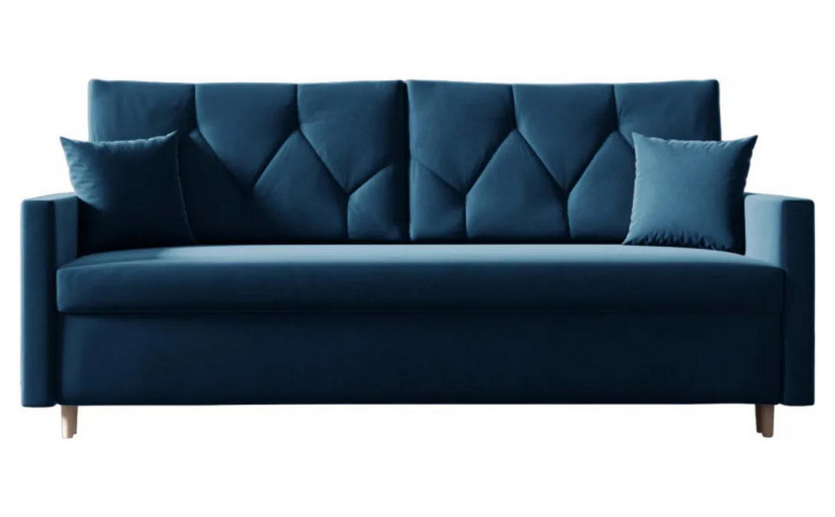 Wenn Sie von einer bequemen Erholung nach einem anstrengenden Arbeitstag träumen, haben wir für Sie ein Sofa, das die perfekte Lösung sein wird. Die verwendeten Bonell-Federn und der Schaumstoff sorgen dafür, dass man sich frei entspannen kann. Die Möglichkeit, das Sofa auszuziehen, ist ebenfalls ein zusätzlicher Vorteil, falls es nachts als Bett dienen soll. Beine in Holzfarbe verleihen Leichtigkeit. Gesteppte Kissen sind ein großer Vorteil im Aussehen, da ihre Anordnung das Sofa einzigartig macht.