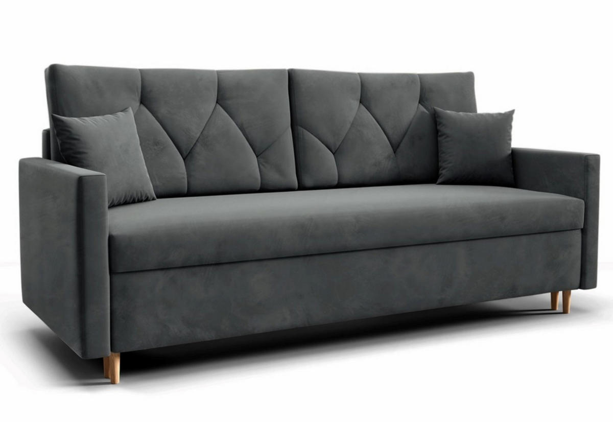 Wenn Sie von einer bequemen Erholung nach einem anstrengenden Arbeitstag träumen, haben wir für Sie ein Sofa, das die ideale Lösung sein wird. Die verwendeten Bonellfedern und der Schaumstoff sorgen dafür, dass man sich frei entspannen kann. Die Möglichkeit, das Sofa ausklappen zu können, ist ebenfalls ein zusätzlicher Vorteil, falls es nachts als Bett dienen soll. Beine in Holzfarbe verleihen Leichtigkeit. Gesteppte Kissen sind ein großer Vorteil im Aussehen, da ihre Anordnung das Sofa einzigartig macht.