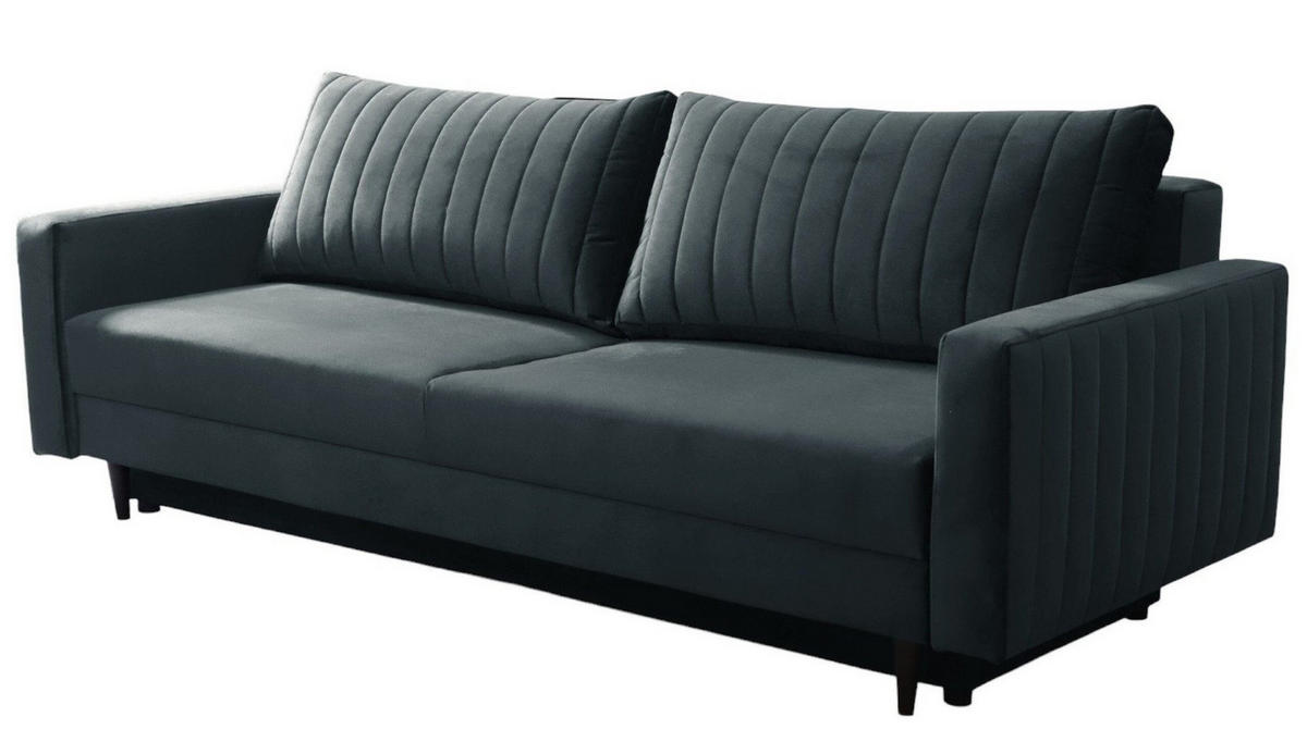 Sofa PALMO ist die ideale Lösung für das Wohnzimmer in jedem Stil. Elegante Steppnähte auf den Kissen und Armlehnen verleihen Charme und machen sie äußerst attraktiv im Aussehen. Durch die Verwendung von Bonell-Federn ist das Sofa bequem, und Sitzfläche sowie Rückenlehne verformen sich während der Nutzung nicht. Ein weiterer Vorteil ist das System zur Erleichterung des Ausklappens, das ein leichtes und problemloses Ausklappen des Möbelstücks ermöglicht. Der große Stauraum bietet Platz für Bettwäsche und andere Textilien, die man gerade verstauen möchte. Der angebotene Stoff Monolith ist ein samtiger, angenehmer Stoff. Monolith hat eine hydrophobe Beschichtung, die die Reinigung des Möbels erleichtert und das Eindringen von Flüssigkeiten in die Beschichtung begrenzt.