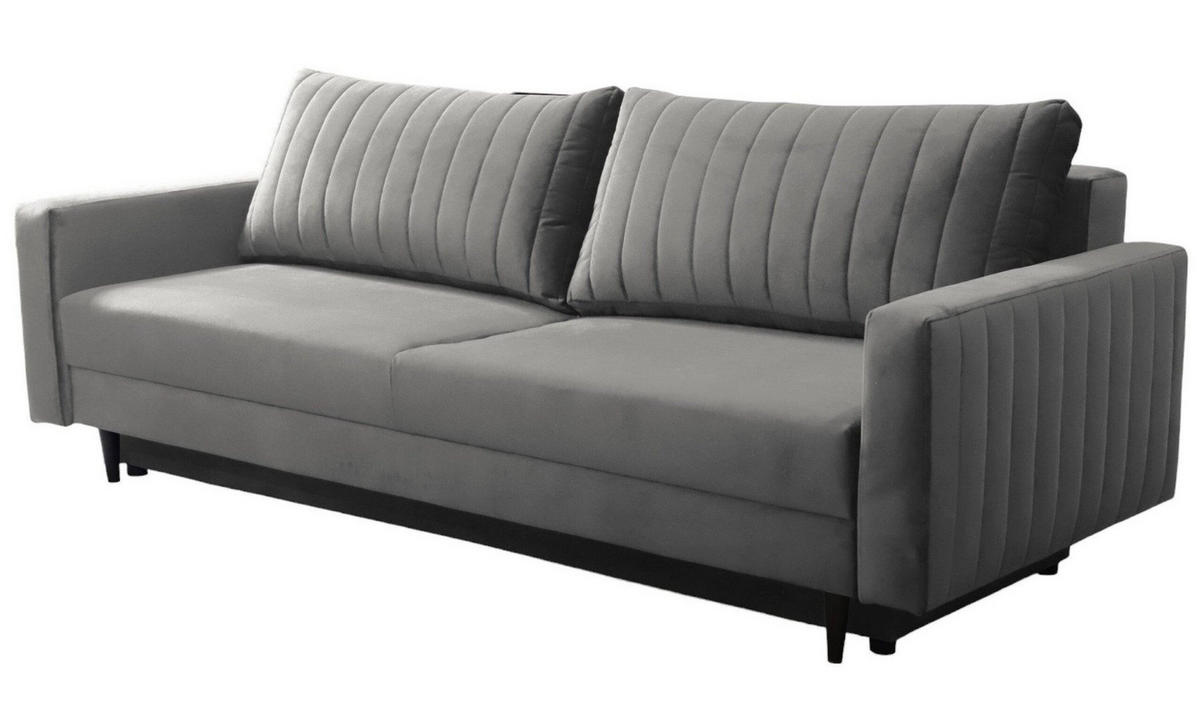 Sofa PALMO ist die ideale Lösung für das Wohnzimmer in jedem Stil. Elegante Steppnähte auf den Kissen und Armlehnen verleihen Charme und machen sie äußerst attraktiv im Aussehen. Durch die Verwendung von Bonell-Federn ist das Sofa bequem, und Sitzfläche sowie Rückenlehne verformen sich während der Nutzung nicht. Ein weiterer Vorteil ist das System zur Erleichterung des Ausklappens, das ein leichtes und problemloses Ausklappen des Möbelstücks ermöglicht. Der große Stauraum bietet Platz für Bettwäsche und andere Textilien, die man gerade verstauen möchte. Der angebotene Stoff Monolith ist ein samtiger, angenehmer Materialtyp. Monolith hat eine hydrophobe Beschichtung, die die Reinigung des Möbels erleichtert und das Eindringen von Flüssigkeiten in die Beschichtung begrenzt.
