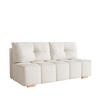 Die Sofa Lora ist ein großartiges Angebot für diejenigen, die Praktikabilität sowie maximalen Komfort beim Entspannen schätzen. Ihre modulare Bauweise eignet sich ideal für große Wohnzimmer ebenso wie für kleinere Räume, was eine flexible Anpassung an individuelle Bedürfnisse ermöglicht. Das Sofa kann dank des automatischen DL-Mechanismus einfach in eine Schlafgelegenheit verwandelt werden. Die Sofa ist mit einem geräumigen Bettkasten ausgestattet, der die Aufbewahrung verschiedener Gegenstände ermöglicht und dabei hilft, Ordnung zu halten. Der angenehm weiche, gesteppte Bezug verleiht dem Innenraum Leichtigkeit und Frische. Die Materialien Catch Me zeichnen sich durch hervorragende Qualität aus. Es handelt sich um ein interessantes Material mit Bouclé-Struktur, das angenehm im Griff ist und den Möbeln einen originellen Charakter verleiht. Jedes Element des Sofas wurde sorgfältig durchdacht, was sich in hoher Verarbeitungsqualität widerspiegelt.