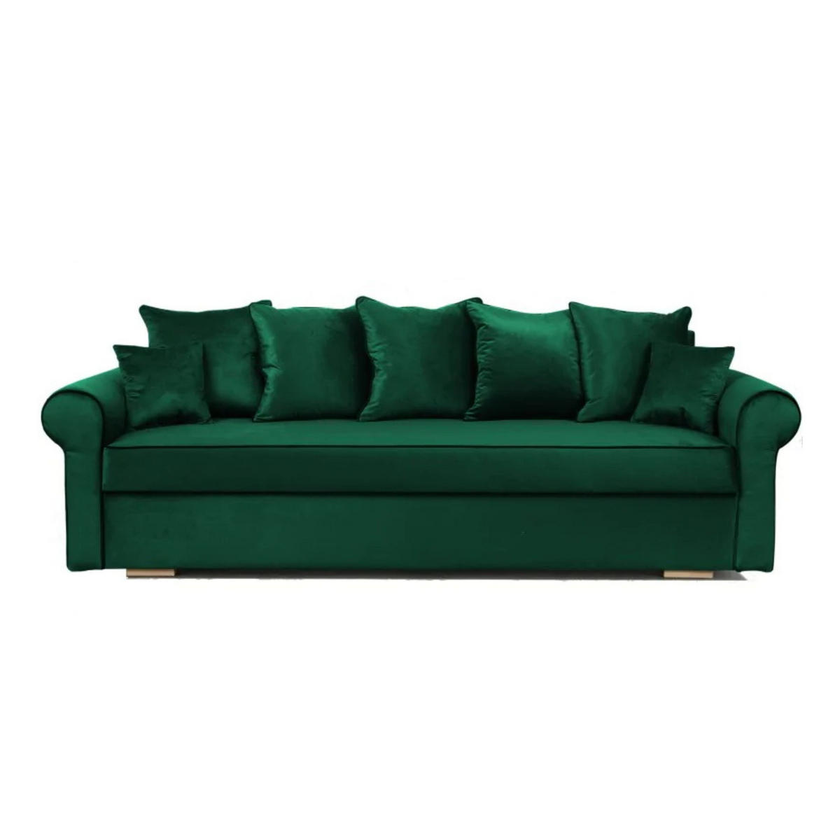 - Das Sofa ist in Stoff Kronos 19 Flaschengrün + schwarze Paspel (Stoffart Velours/Plüsch) gefertigt