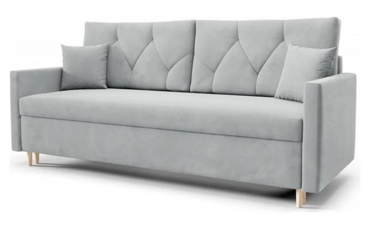 Wenn Sie von einer bequemen Erholung nach einem anstrengenden Arbeitstag träumen, haben wir für Sie ein Sofa, das die ideale Lösung sein wird. Die verwendeten Bonell-Federn und der Schaumstoff sorgen dafür, dass man sich frei entspannen kann. Die Möglichkeit, das Sofa ausklappen zu können, ist ebenfalls ein zusätzlicher Vorteil, falls es nachts als Bett dienen soll. Beine in Holzfarbe verleihen Leichtigkeit. Gesteppte Kissen sind ein großer Vorteil im Aussehen, da ihre Anordnung das Sofa einzigartig macht.