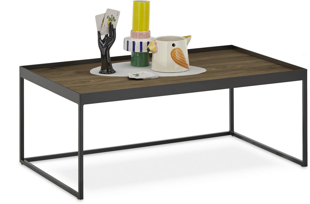 COUCHTISCH Eiche massiv 100/60/49 cm rechteckig Schwarz, Eiche dunkel  - Eiche dunkel/Schwarz, Natur, Holz/Metall (100/60/49cm) - SetOne by MusterringSetOne by Musterring