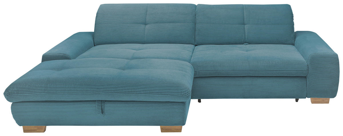 ECKSOFA Blau Cord Rücken echt, Kopfteilverstellung, Sitztiefenverstellung