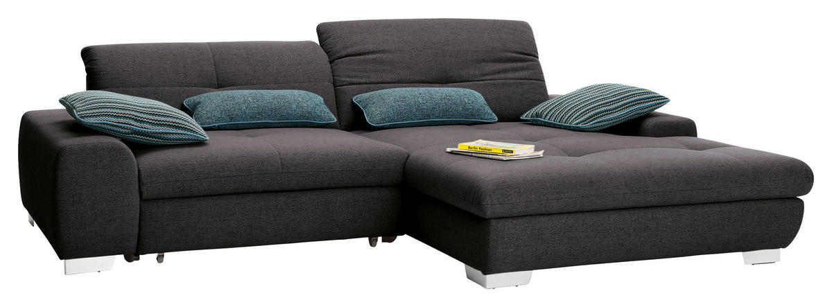 Als treue Begleitung für wonnige Time-outs daheim gesellt sich dieses dunkelgraue Ecksofa von SET ONE BY MUSTERRING mit Flachgewebe-Bezug gerne zu Ihnen!