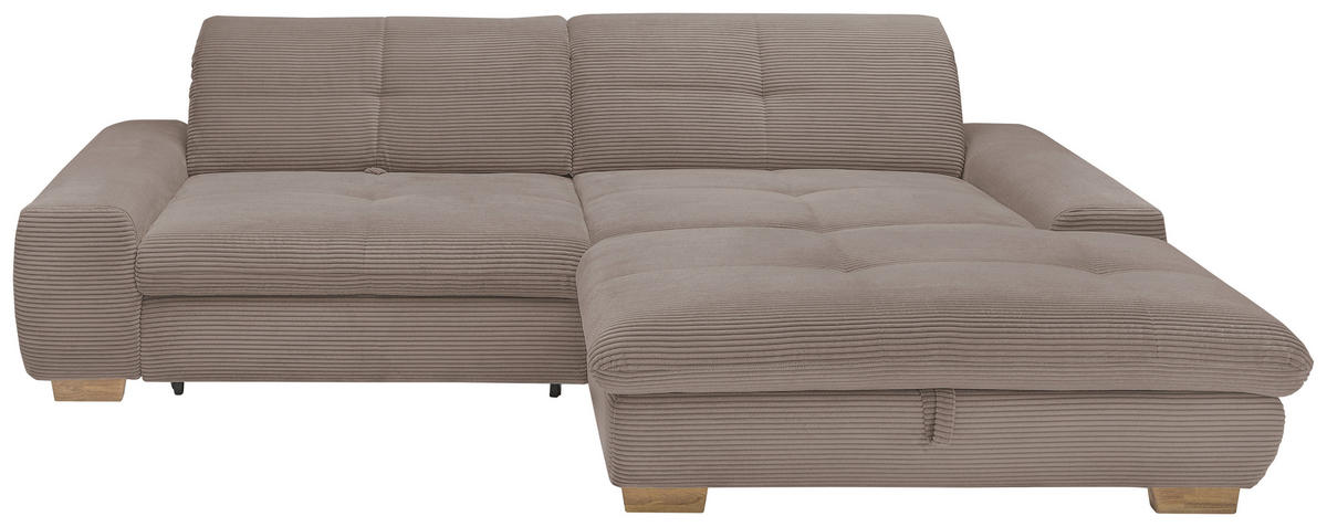 ECKSOFA Greige Cord Rücken echt, Kopfteilverstellung, Sitztiefenverstellung