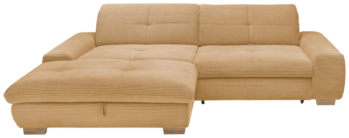 ECKSOFA Honig Cord Rücken echt, Kopfteilverstellung, Sitztiefenverstellung