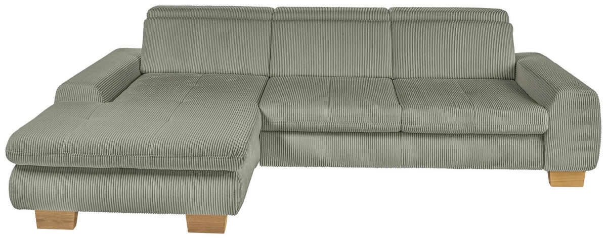 ECKSOFA Olivgrün Cord Rücken echt, Kopfteilverstellung, Sitztiefenverstellung