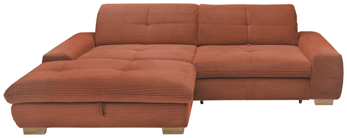 SetOne by Musterring ECKSOFA Orange Cord Rücken echt, Kopfteilverstellung, Sitztiefenverstellung