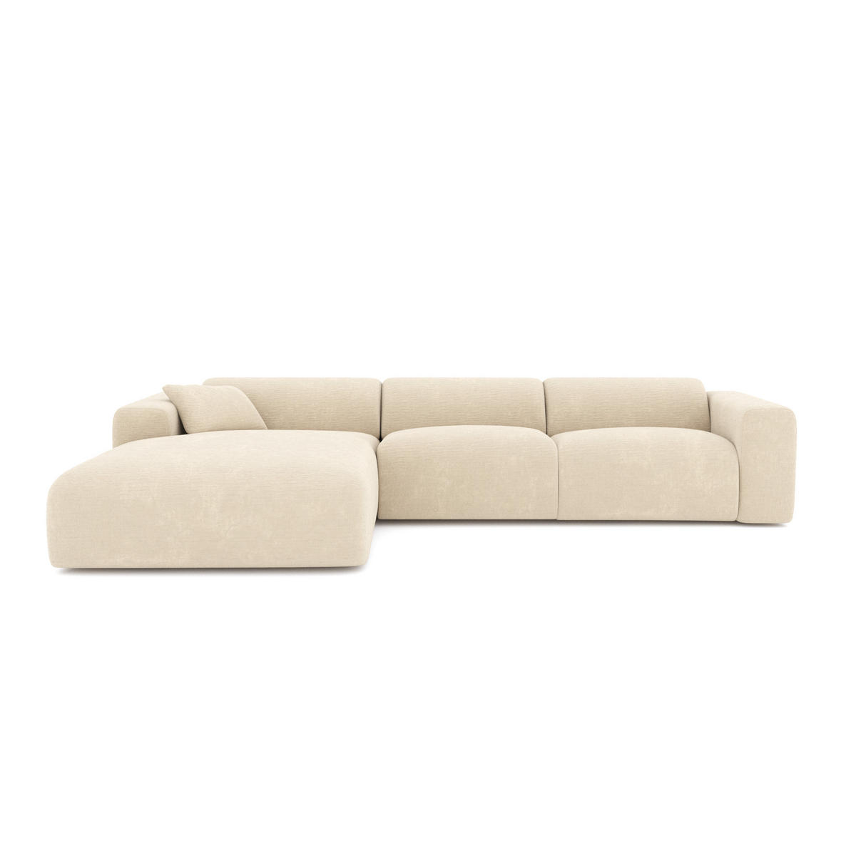 Pflege: Regelmäßig absaugen. Leichte Flecken mit einem weißen Tuch und Seifenwasser entfernen. Professionelle Reinigung für starke Flecken.Die Ecke ist links mit Blick auf das Sofa..