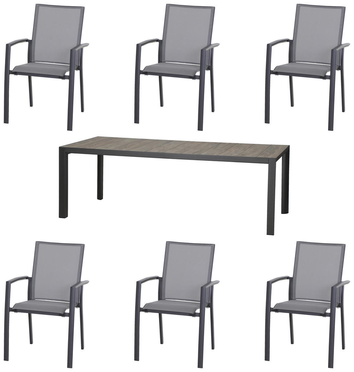GARTENTISCHGRUPPE Aluminium  - Dunkelgrau/Anthrazit, Basics, Keramik/Kunststoff (100/74/220cm) - Siena GardenSiena Garden