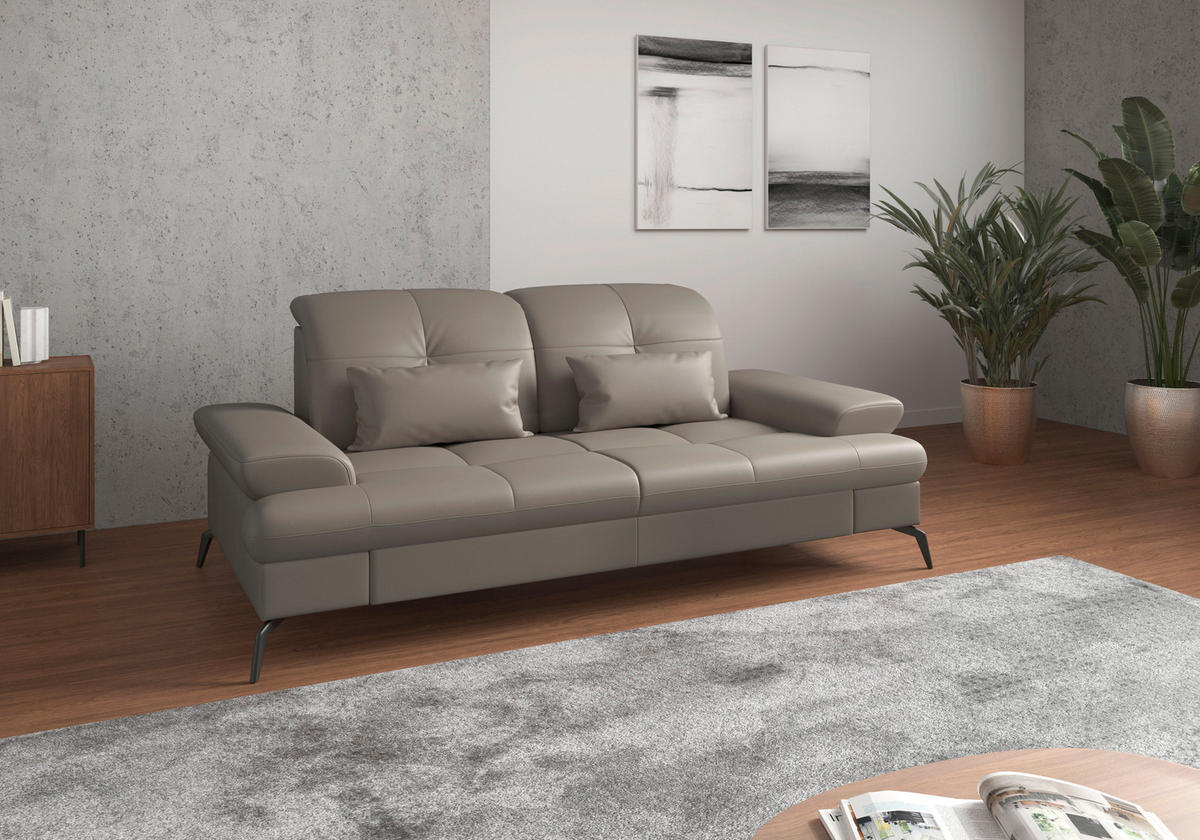 Eine Sonderportion Wohnlichkeit schenkt Ihnen dieses graue 2,5-Sitzer-Sofa von SIT & MORE mit Leder-Bezug. Greifen Sie zu!
