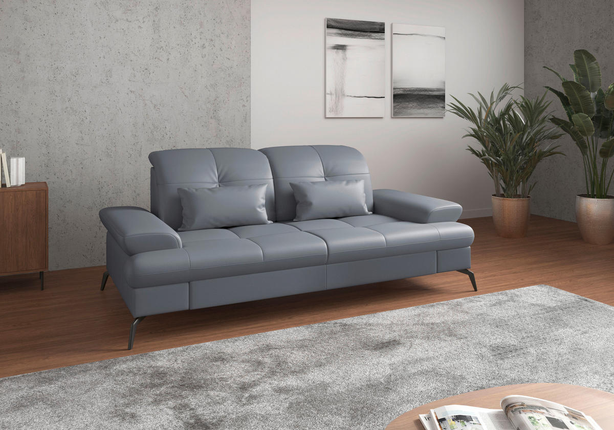 Ab auf Ihr graublaues 3-Sitzer-Sofa von SIT & MORE mit Leder-Bezug!