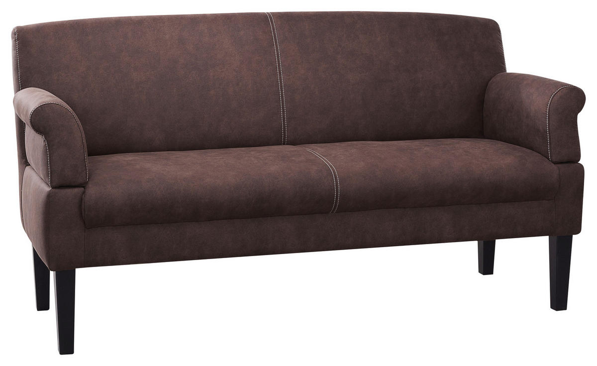 Sehenswerter Hingucker Das markante Kolorit in Dunkelbraun verleiht dem Polstermöbel, das beige Kontrastnähte aufweist, eine harmonische Optik und fügt sich schick in verschiedene Einrichtungstrends ein. Das Design wird durch die hohen, konischen Füße aus Buche in Schwarz stimmig vervollständigt, welche leichte Bodenfreiheit schaffen.