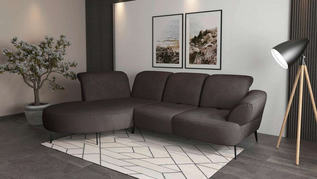 Im Lieferumfang enthalten: Ein graphitfarbenes Ecksofa von SIT & MORE mit Flachgewebe-Bezug als Erfolgsgarant für Ihre Well-Being-Strategie @home!