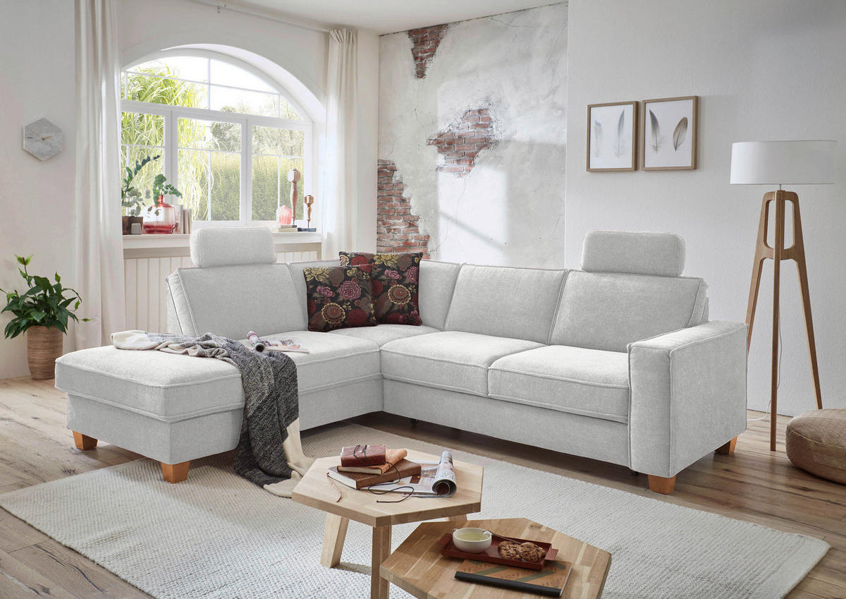 Daheim ist, wo dieses silberfarbene Ecksofa von SIT & MORE mit Flachgewebe-Bezug ist!