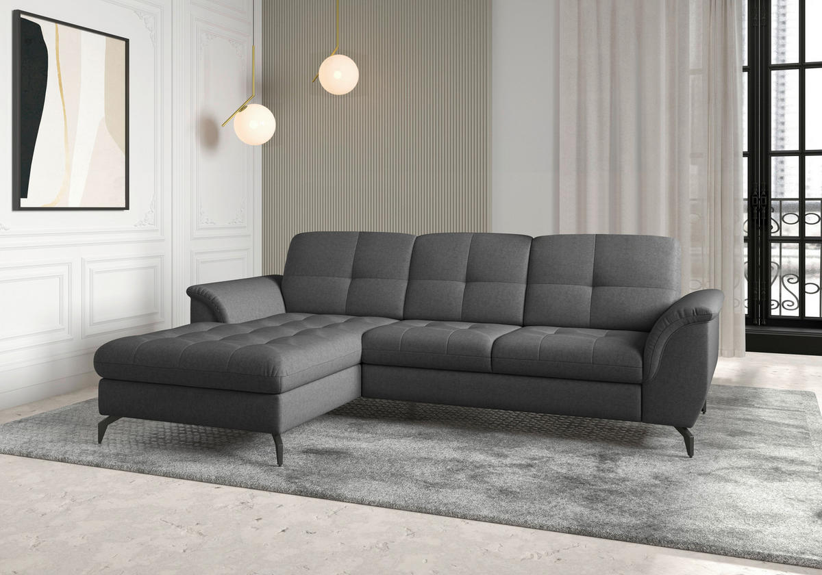 Ab auf Ihr dunkelgraues Ecksofa von SIT & MORE mit Flachgewebe-Bezug!