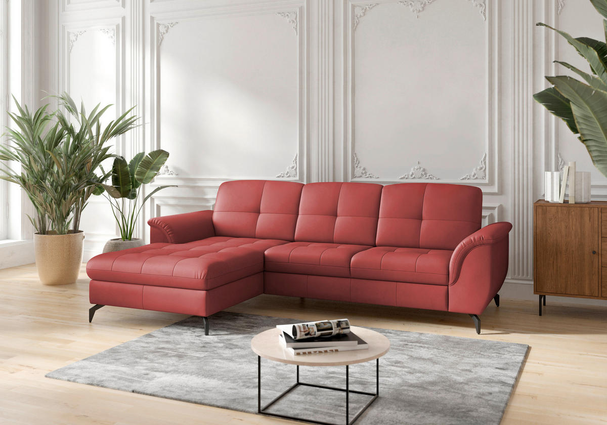 ECKSOFA ZORA E Rot Echtleder Bettkasten, Liegefläche im Originalstoff RotSchenkel: 164/262 cm5.579,00 €***2.869,00 €