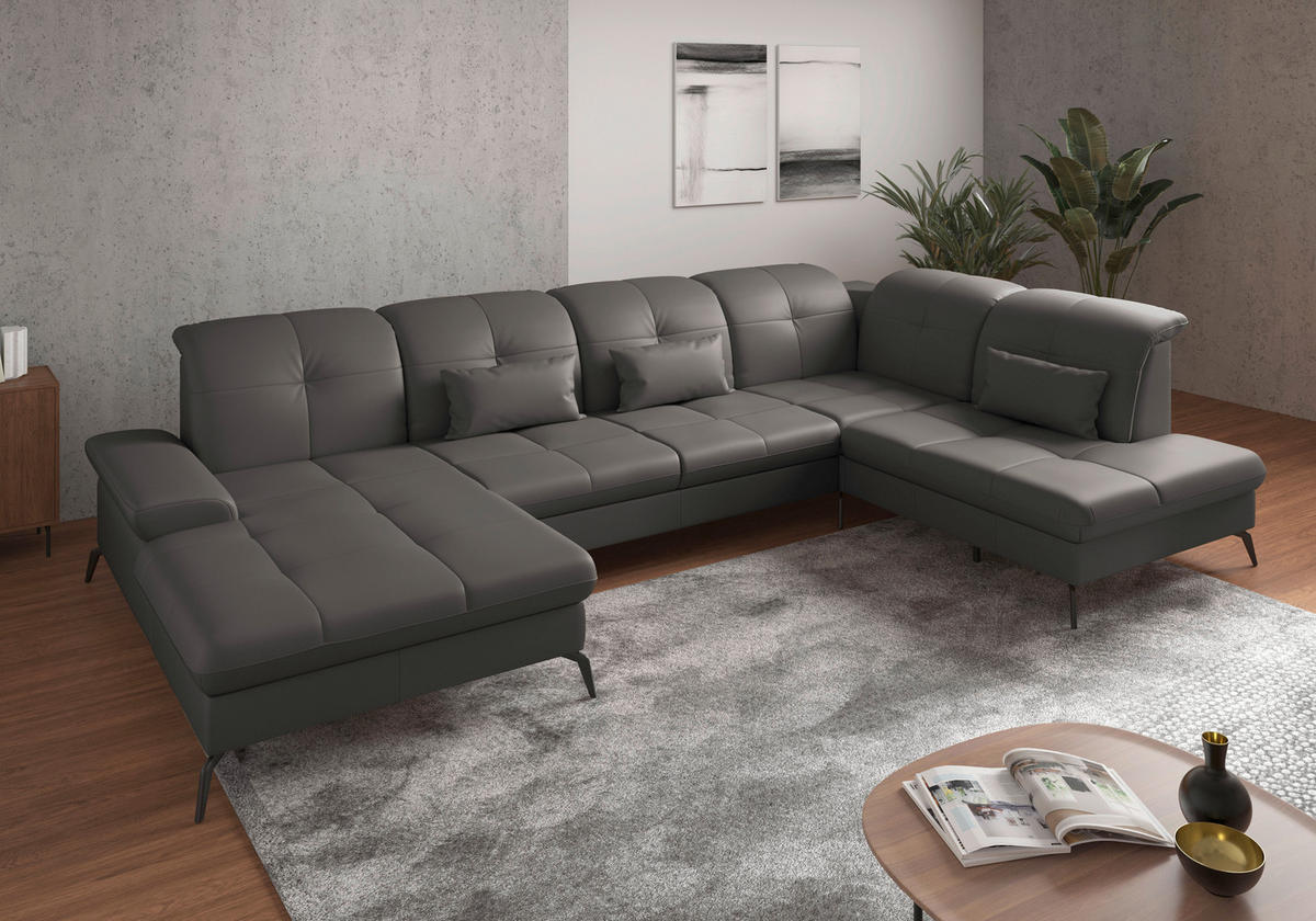 Rein in die Komfortzone: Diese mokka-braune Wohnlandschaft von SIT & MORE mit Leder-Bezug entführt Sie auf ein traumhaftes Terrain zum geruhsamen Durchatmen!