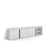 TV-Modul mit Klapptüren und großem Stauraum. Scharniere mit Soft-Close. Aluminiumgriffe. Abmessungen des Moduls: 103 cm breit, 50 cm hoch, 35 cm tief. Farbe: dunkler eiche und schwarz mit Maserung un hochwertiger Holzoptik.