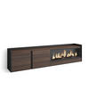TV-Modul mit Klapptüren und großem Stauraum. Scharniere mit Soft-Close. Aluminiumgriffe. Abmessungen des Moduls: 103 cm breit, 50 cm hoch, 35 cm tief. Farbe: dunkler eiche und schwarz mit Maserung un hochwertiger Holzoptik.