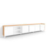 TV-Modul mit Klapptüren und großem Stauraum. Scharniere mit Soft-Close. Aluminiumgriffe. Abmessungen des Moduls: 103 cm breit, 50 cm hoch, 35 cm tief. Farbe: schwarz und eiche mit Maserung un hochwertiger Holzoptik.
