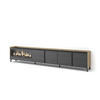 TV-Modul mit Klapptüren und großem Stauraum. Scharniere mit Soft-Close. Aluminiumgriffe. Abmessungen des Moduls: 103 cm breit, 50 cm hoch, 35 cm tief. Farbe: schwarz und eiche mit Maserung un hochwertiger Holzoptik.