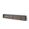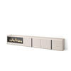 TV-Modul mit Aussparung. Maße des Moduls: 109 cm breit, 50 cm hoch, 35 cm tief. Farbe: Mattweiß und Hell-Eiche mit Maserung un hochwertiger Holzoptik.