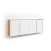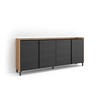 Modul mit 2 Türen, Inneres Trennregal. Scharniere mit Soft-Close. Aluminiumgriffe. Abmessungen des Moduls: 104 cm breit, 80 cm hoch, 35 cm tief. Farbe: dunkles Eichenholz und Schwarz mit Maserung un hochwertiger Holzoptik.