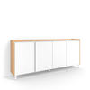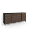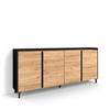 Modul mit 2 Türen, Inneres Trennregal. Scharniere mit Soft-Close. Aluminiumgriffe. Abmessungen des Moduls: 104 cm breit, 80 cm hoch, 35 cm tief. Farbe: dunkles Eichenholz und Schwarz mit Maserung un hochwertiger Holzoptik.