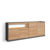 LOWBOARD, 207x37x50 cm, Für TV-Geräte bis zu 80", Fernsehtisch, Dunkler Eiche und Schwarz
