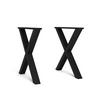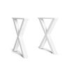 X-förmige Tischgestell aus Massivholz für Tischplatten in weiß lackierter Farbe, die sich für Ess- oder Bürotische im Industriestil eignen.