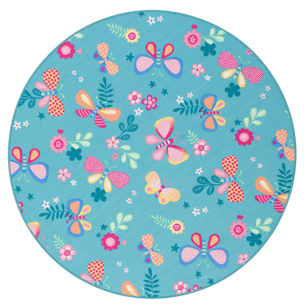 KINDER SPIEL TEPPICH SCHMETTERLING RUND - Türkis, Textil (133/133cm) - SnapstyleSnapstyle