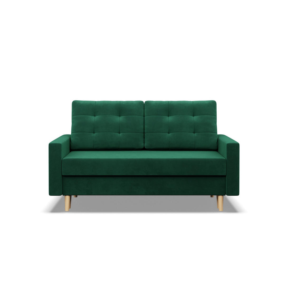 Dieses 2-Sitzer-Sofa vereint viele Funktionen: Ein Bettkasten bietet zusätzlichen Stauraum, hohe Buchenholzbeine garantieren eine bequeme Reinigung und eine einfache Schlaffunktion mit Schnellausklappsystem ist eine gute Lösung, wenn Sie von Gästen mit Kindern überrascht werden.