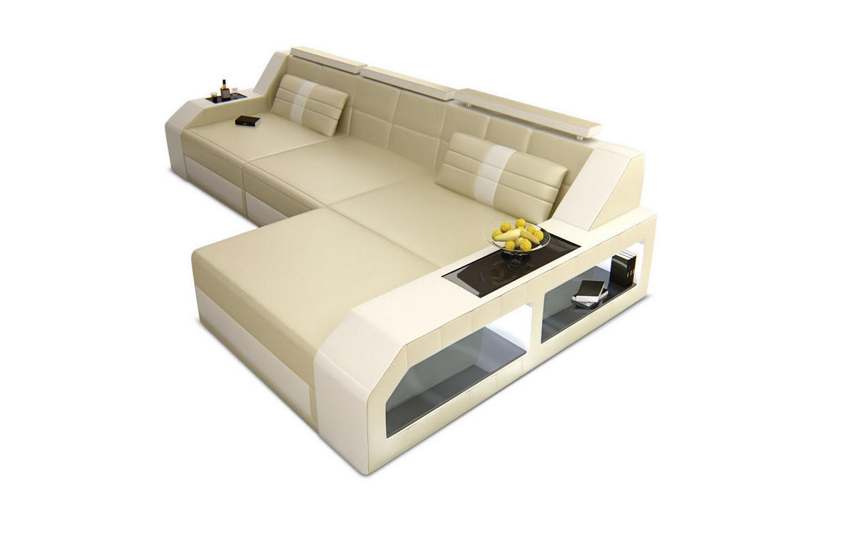 ECKSOFA Arezzo L - Beige/Weiß, Leder (308/194cm) - Sofa DreamsSofa Dreams