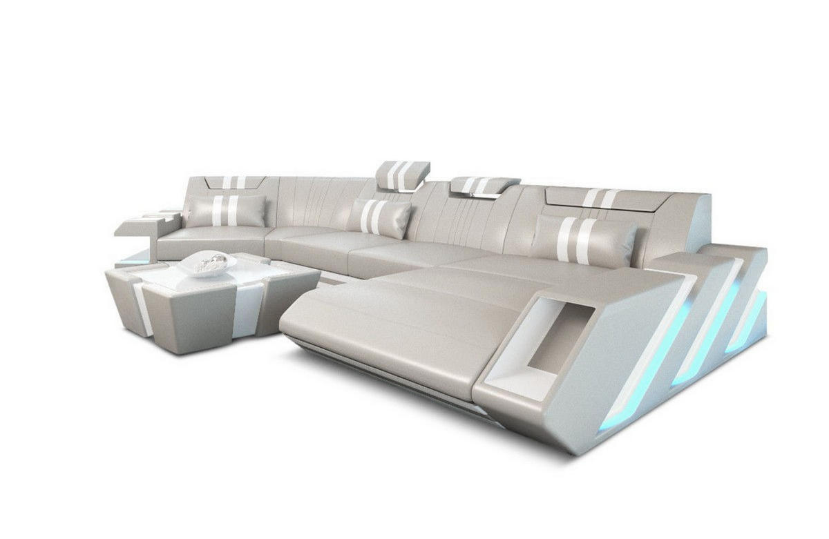 WOHNLANDSCHAFT Bari U - Schwarz/Weiß, Leder (456/89/243cm) - Sofa Dreams